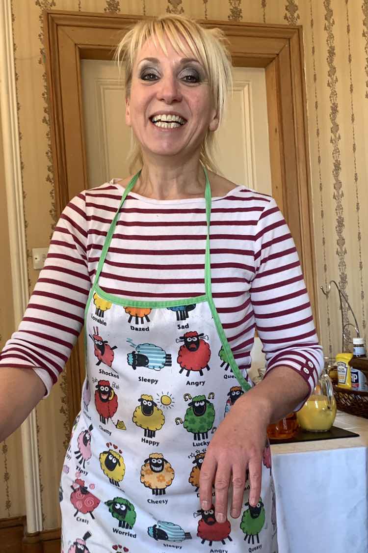 Angie was wearing one of her Wocky Wooly Sheep aprons from Ireland.
