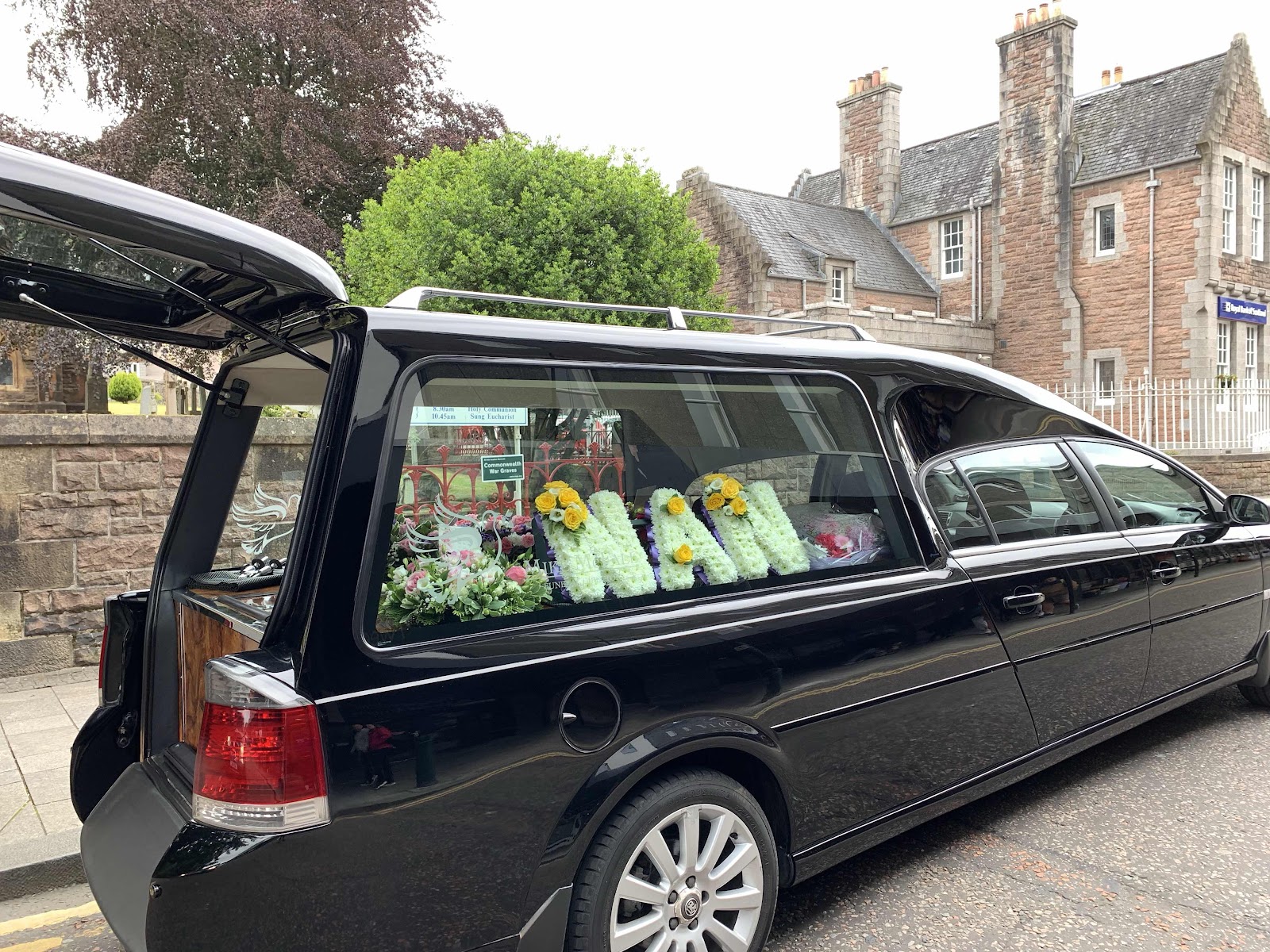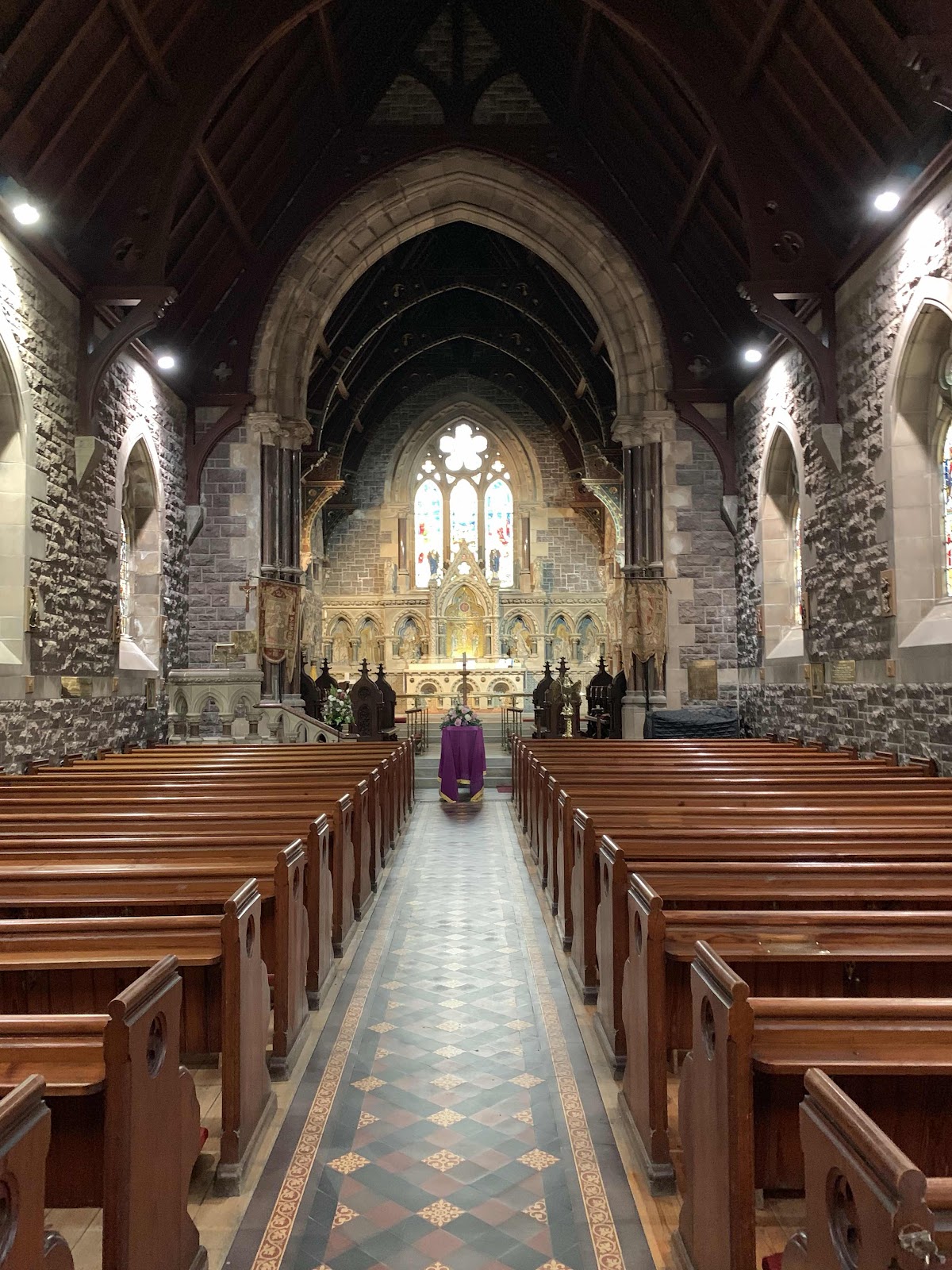 Spent time in Saint Andrews Episcopal Church of Scotland. I was the only one in there and just wandered around looking at all the Stained glass windows, icons, sculptures, etc. In the back of the church were a number of flower arrangements and one spelled the word N.A.N. When I got to the front of the church I realized there was a table covered with a purple cloth and flowers on it. Then realized it was a casket. NAN was in there waiting for her funeral.
