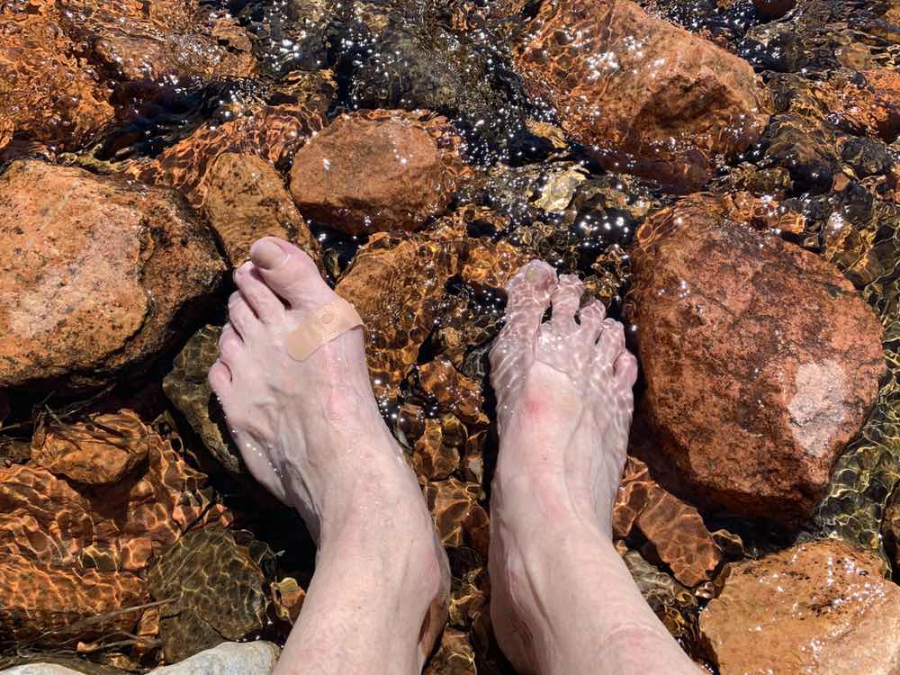 Had “lunch” break by a stream. Took the boots, the ankle brace, and socks off, and stuck both feet into the icy cold Stream. It felt great